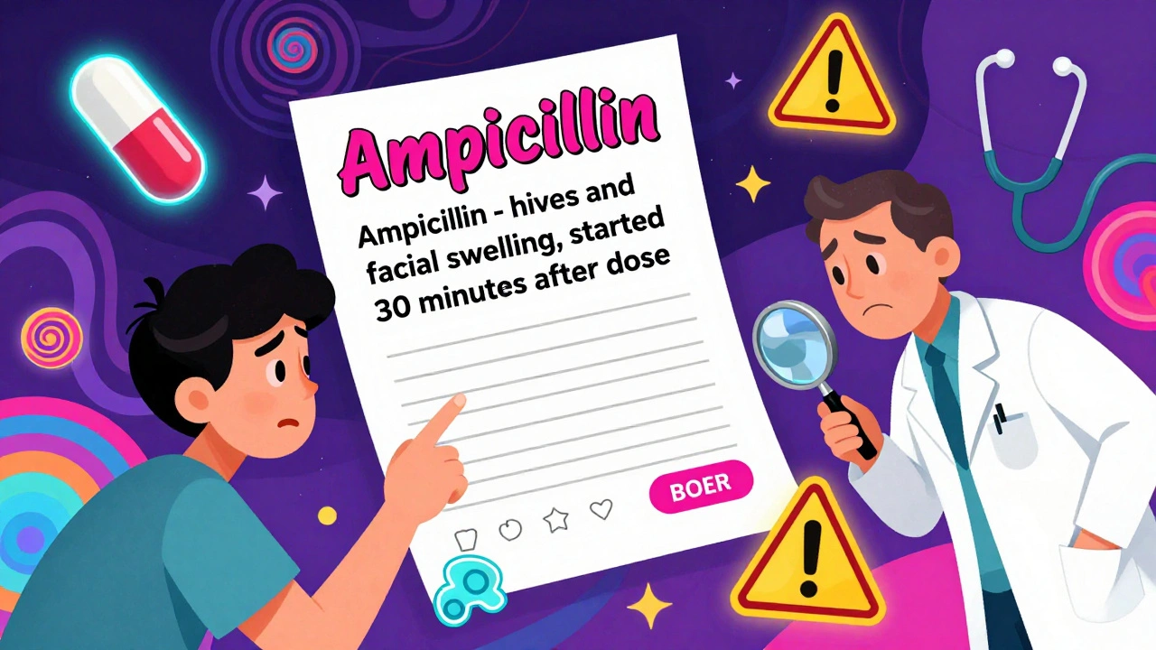 Your medical record isn’t just a file. It’s your shield. A poorly documented allergy can mean the difference between a quick recovery and a trip to the ICU. Don’t rely on memory. Don’t assume your doctor knows what you meant. Write it down clearly, review it regularly, and speak up if something doesn’t look right. Even small changes-like replacing “penicillin” with “amoxicillin” and adding “hives, 20 minutes after dose”-can help a doctor choose the right treatment the first time. That’s not just good documentation. That’s good medicine.What should I do if I think my drug allergy is listed wrong in my records?