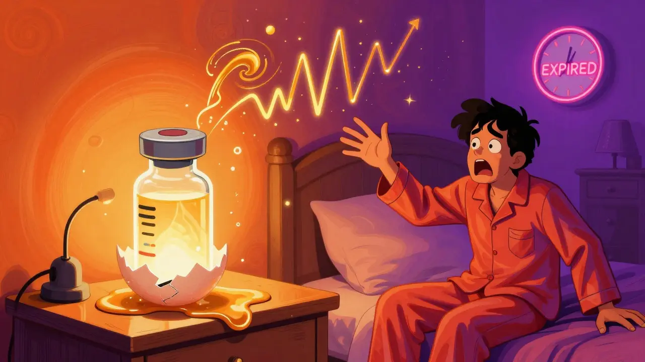 Let’s be clear: using an expired EpiPen or nitroglycerin isn’t like taking an expired aspirin. It’s not a waste of money. It’s a gamble with your life.For insulin, the risk is hidden. You might not notice right away. Your blood sugar swings wildly-50 mg/dL one hour, 450 the next. You feel shaky, confused, nauseous. You think you’re doing something wrong. You take more insulin. Then you crash. That’s what happened to a Reddit user named u/InsulinWarrior. After using insulin two months past expiration, they ended up hospitalized for two days. Their body couldn’t respond to the weakened drug.