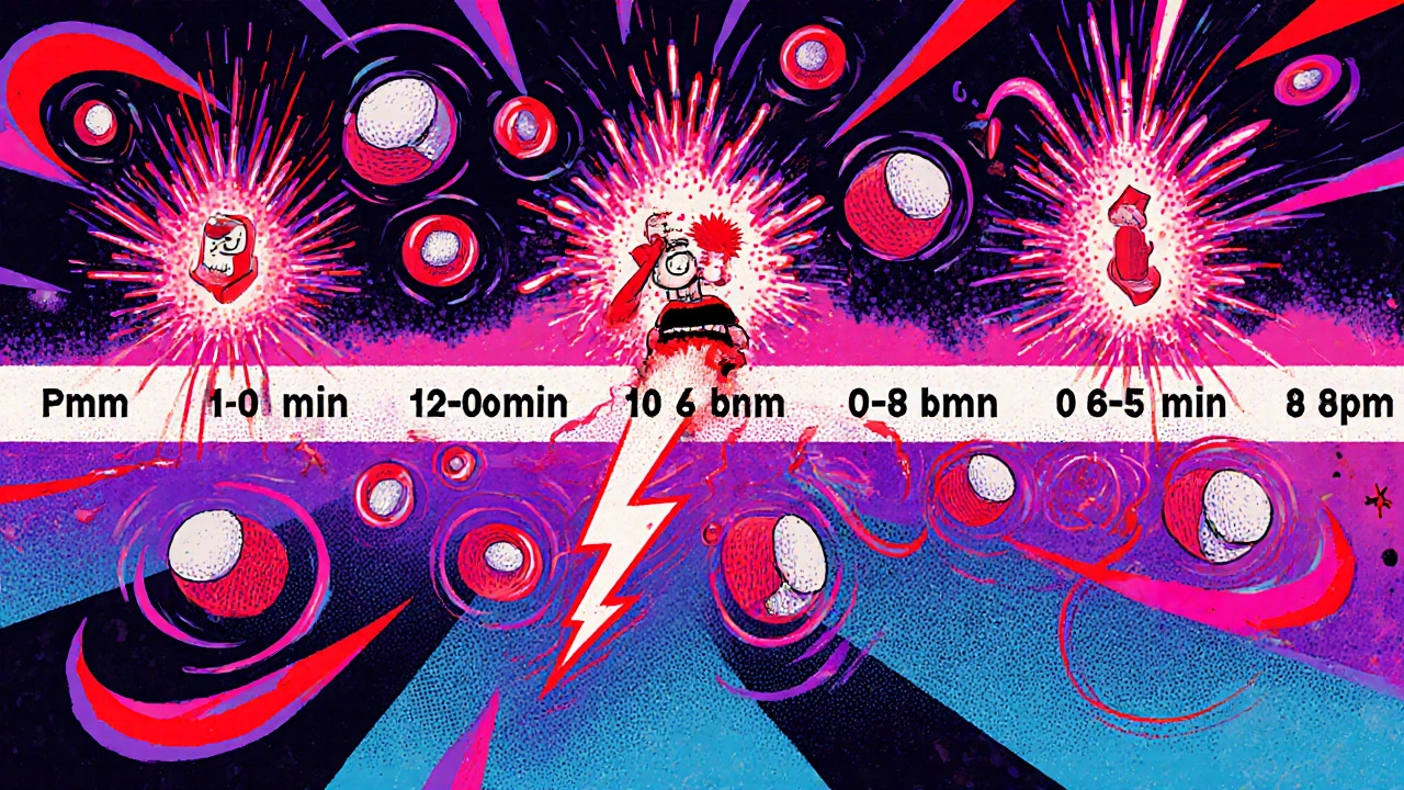 If you feel dizzy, break out in hives, or have trouble breathing within minutes of taking a pill, don’t wait. These are signs of an immediate reaction, often tied to allergies. Anaphylaxis, the most dangerous type, strikes in under 15 minutes in nearly 7 out of 10 cases, especially with antibiotics like penicillin or painkillers like aspirin. The American Academy of Allergy, Asthma & Immunology found that 98.7% of anaphylactic reactions happen within an hour. If you’ve had a reaction before to any drug, you’re at higher risk. Always carry an epinephrine auto-injector if prescribed, and never ignore sudden swelling of the lips, tongue, or throat. These aren’t "bad vibes"-they’re emergencies.Early Delayed Reactions: 1 to 72 Hours